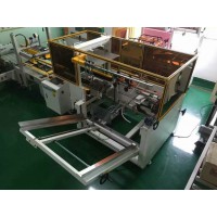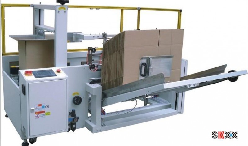此開箱機(jī)結(jié)構(gòu)設(shè)計(jì):一次完成紙箱吸箱、開箱、成型、折底、封底等包裝工序。適用于多種尺寸的紙箱自動(dòng)開箱封底,如需變換紙箱規(guī)格,手動(dòng)調(diào)節(jié)即可,所需時(shí)間1-2分鐘;本開箱機(jī)可單機(jī)作業(yè),也可與自動(dòng)化包裝流